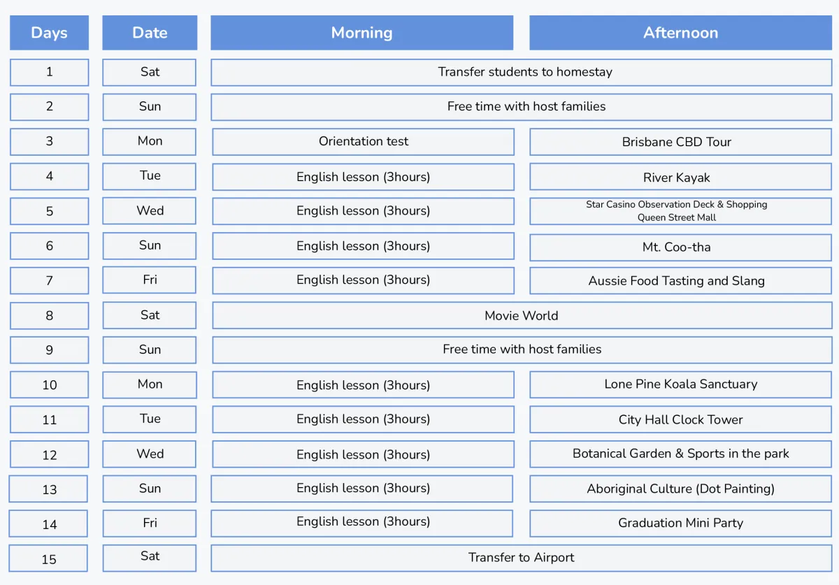 Aucun remboursement ne sera accordé pour les groupes annulant après le début du programme.